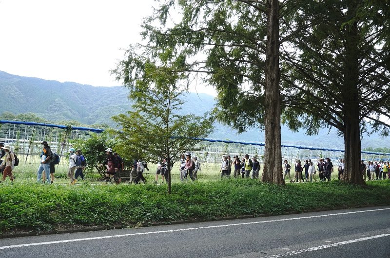 | 枝豆収穫ウオーク 9月14日(日) 曇り一時雨 84名 12kmコース マキノ駅~メタセコイア並木~ピックランド~近江中庄駅 6kmコース マキノ駅~湖のテラス~百瀬川~近江中庄駅