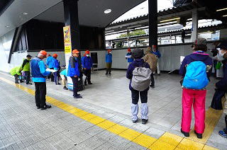 | 比叡山年輪ウオーク 5月25日(日) 曇り時々雨 56名 ◆往路(行き)Aコース:生源寺~大宮谷林道~横川中堂~玉体杉~峰道広場(11km) Bコース:生源寺~坂本ケーブル駅=延暦寺駅~延暦寺東塔~西塔~峰道広場(6km) ◆復路(帰り)Cコース:峰道広場~延暦寺~大宮谷林道~生源寺(11km) Dコース:峰道広場~(Bコースの逆)~延暦寺駅=坂本ケーブル~生源寺(6km) Eコース:峰道広場解散 *バス等を利用