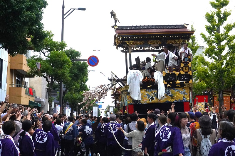| 水口曳山祭りに往こう 4月20日(日) 晴れ 83名 三雲駅~朝国~泉公民館~柏木小学校~北脇公民館~水口神社~野洲川内貴橋~川田神社~貴生川交差点~貴生川駅