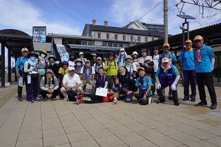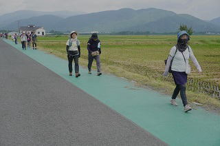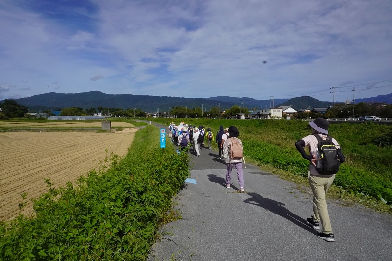 | 琵琶湖一周健康ウオーキング2025⑥ 9月21日(日) 晴れ 154名 長浜駅~産直びわみずべの里~姉川大橋~奥琵琶スポーツの森~湖北みづどりステーション ~片山トンネル~赤後寺~木ノ本駅