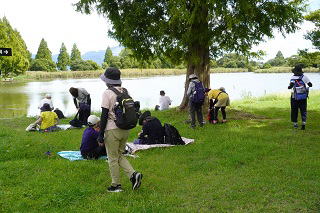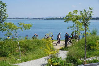 | 曽根沼公園で落羽松の呼吸根を探そう 6月1日(日) 曇り 75名 稲枝駅~びわこ湖岸緑地・曽根沼公園~荒神山公園~荒神山神社遥拝殿~河瀬駅