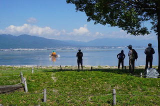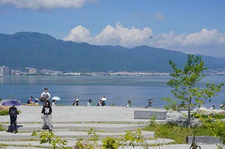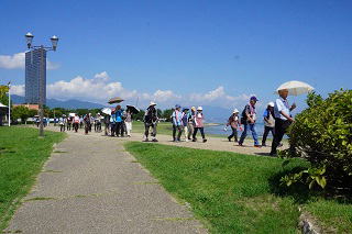 | 大津なぎさウオーク(たそがれウオーク) 2025年8月26日(火) 晴れ 80名 大津駅~おまつり広場~なぎさ公園~サンシャインビーチ~膳所城跡公園~松原町~石山駅