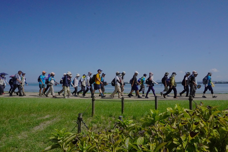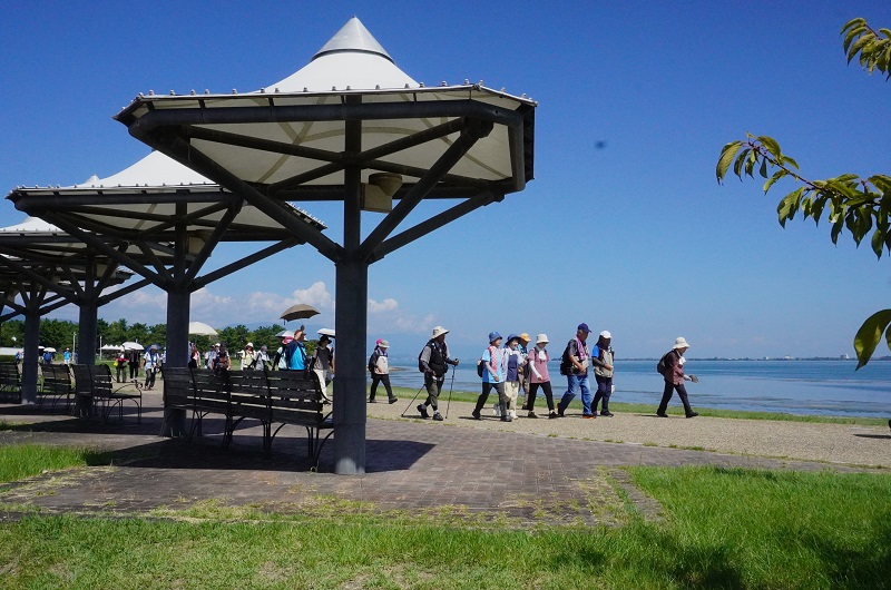 | 琵琶湖一周健康ウオーキング2025➃ 7月20日(日) 晴れ 137名 能登川駅~葉枝見橋~湖岸緑地柳川公園~草の根広場~多景公園~床堺公園~池州橋~彦根城~彦根駅