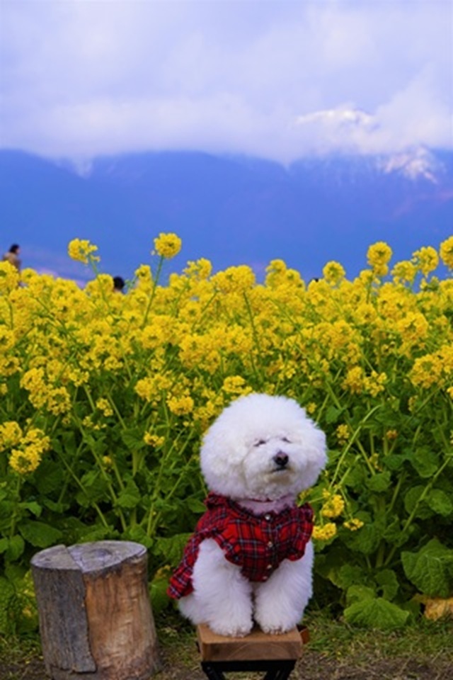 3月のナイスショット1は守山第一なぎさ公園の菜の花と愛犬です。
