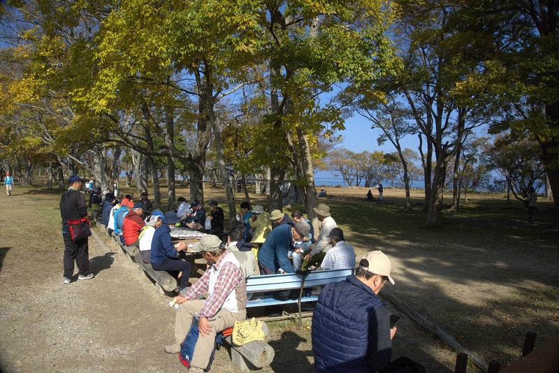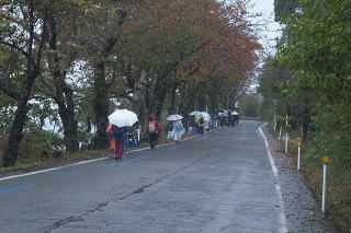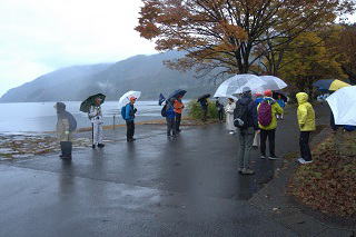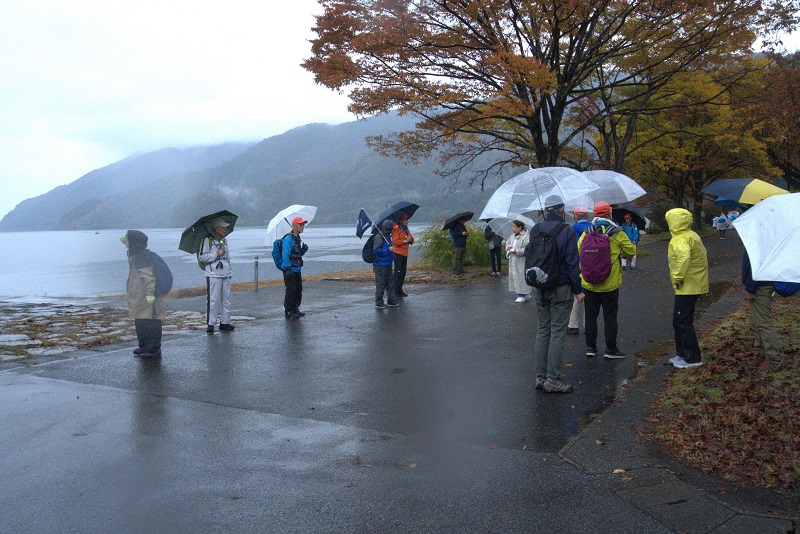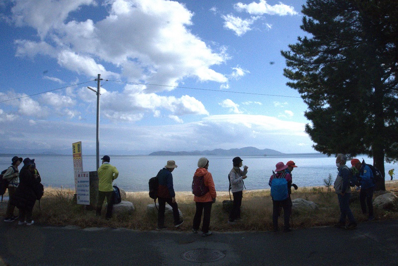 | 琵琶湖一周健康ウオーキング2025⑧ 11月9日(日) 雨・風強し 101名 永原駅~大浦園地~二本松水泳場~海津大崎~湖のテラス~今津百瀬川園地~今津浜~今津周遊基地~近江今津駅