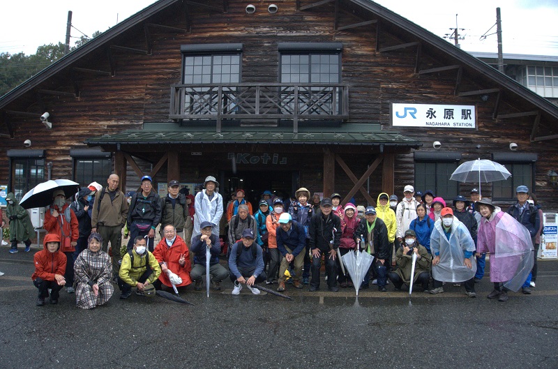 | 琵琶湖一周健康ウオーキング2025⑦ 10月19日(日) 曇り 135名 木ノ本駅~伊香具神社~賤ヶ岳リフト下広場~賤ヶ岳隧道~藤ヶ崎~塩津神社~道の駅あぢかまの里~岩熊第2トンネル入口 ~大浦口信号左折~JA北びわこ永原支店前信号~永原駅