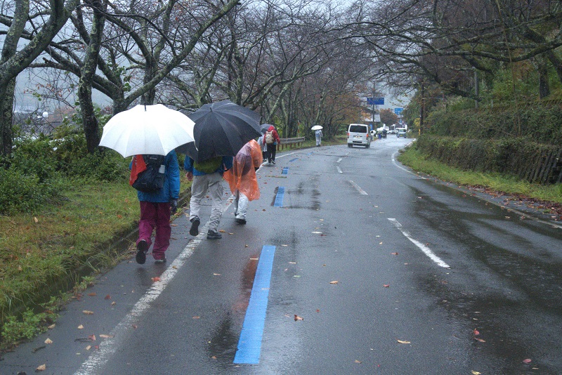 | 比叡山年輪ウオーク 5月25日(日) 曇り時々雨 56名 ◆往路(行き)Aコース:生源寺~大宮谷林道~横川中堂~玉体杉~峰道広場(11km) Bコース:生源寺~坂本ケーブル駅=延暦寺駅~延暦寺東塔~西塔~峰道広場(6km) ◆復路(帰り)Cコース:峰道広場~延暦寺~大宮谷林道~生源寺(11km) Dコース:峰道広場~(Bコースの逆)~延暦寺駅=坂本ケーブル~生源寺(6km) Eコース:峰道広場解散 *バス等を利用