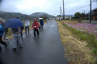 | 枝豆収穫ウオーク 9月14日(日) 曇り一時雨 84名 12kmコース マキノ駅~メタセコイア並木~ピックランド~近江中庄駅 6kmコース マキノ駅~湖のテラス~百瀬川~近江中庄駅