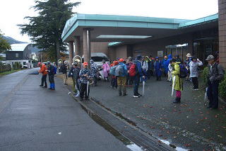 | 愛知川湖畔林から伊庭の水辺を巡る 10月26日(日) 雨 32名 能登川駅~大濱神社~伊庭城址~伊庭の水辺~金比羅神社~能登川水車~博物館~能登川駅