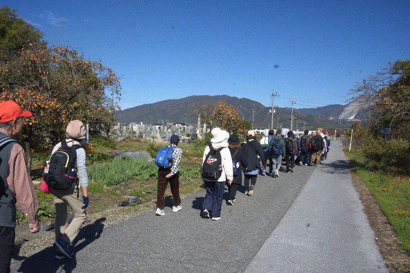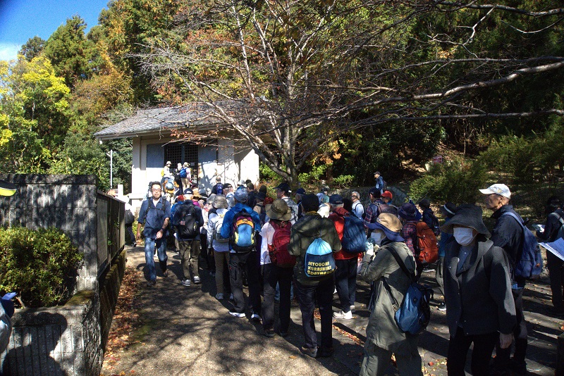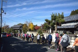 | 山の辺の道を歩く 11月23日(日) 晴れ 111名 桜井駅~仏教伝来の地~金谷の石仏~大神神社~狭井神社~玄賓庵~桧原神社 ~崇神天皇陵~トレイルセンター~黒塚古墳~柳本駅