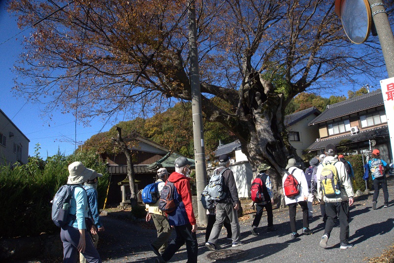| 伊吹の名水を訪ねて 11月16日(日) 晴れ 57名 近江長岡駅~長岡神社の銀杏・ケヤキ~王街道のケヤキ~西山八幡神社~小田分水工~道の駅伊吹の里~三之宮神社 ~ケカチの水~伊吹薬草の里文化センター~泉神社湧水~近江長岡駅