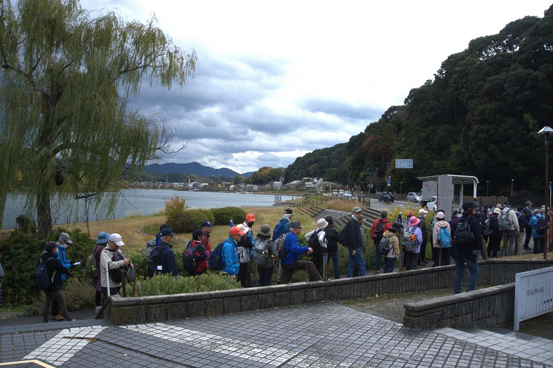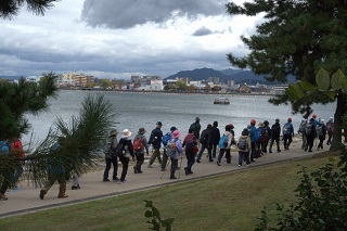 | 大津なぎさウオーク(秋の西近江路を往く) 2025年10月21日(火) 曇り 102名 大津駅~三井寺~尾花川~日本松~際川~唐崎1丁目交差点~唐橋神社~唐崎苑~唐崎駅