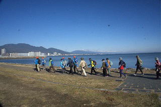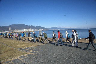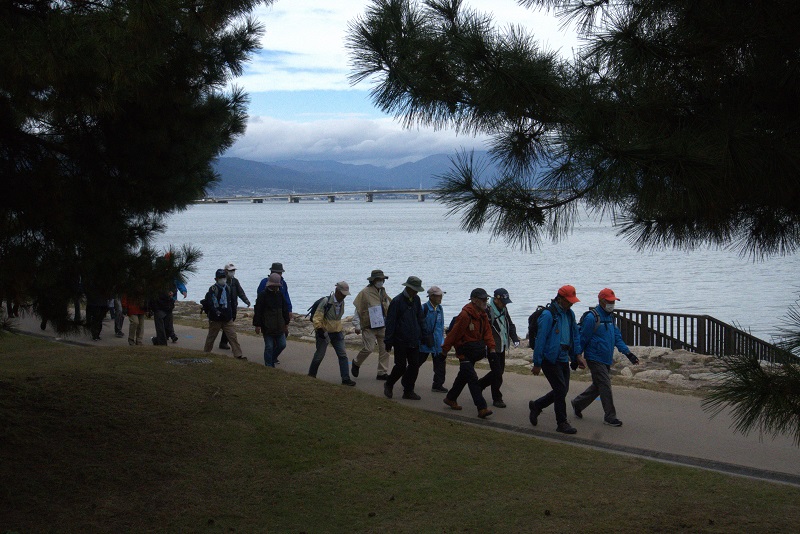 | 琵琶湖一周健康ウオーキング2025⑨ 11月30日(日) 晴れ 144名 近江今津駅~木津交差点~新旭水鳥観察センター~針江浜~源氏浜~安曇川浜園地~横江浜~萩の浜~近江高島駅