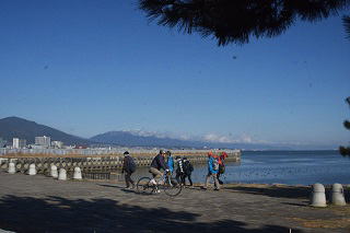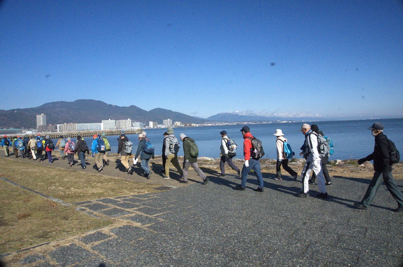 | 琵琶湖一周健康ウオーキング2025⑩ 12月14日(日) 曇り後晴れ 126名 近江高島駅~大溝城跡~鵜川四十八体石仏群~白鬚神社~岩除地蔵~北小松駅~北小松水泳場 ~近江舞子駅~比良駅~青柳水泳場~大谷川橋~志賀駅