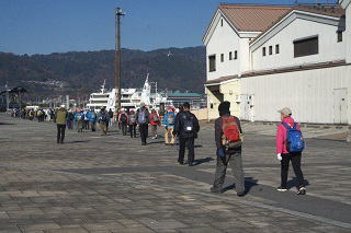 | 大津なぎさウオーク(牛玉さんの日) 2025年11月18日(火) 曇り・風強し 95名 大津駅~石坐神社~和田神社~膳所城址公園~篠津神社~御殿浜~粟津~瀬田唐橋~石山寺~石山駅